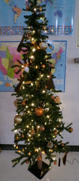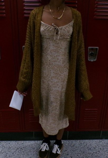 Freshman, Taylor Martinez-Garcia wears one of her favorite fall colors to represent the season. (Takira Fitzgerald)Junior Alyssa King wears her best sweater to kick off the start of Fall. (Takira Fitzgerald)Mrs. Janet Bishop’s, English department, decorated her tree in new fall decor to celebrate the season. (Takira Fitzgerald)