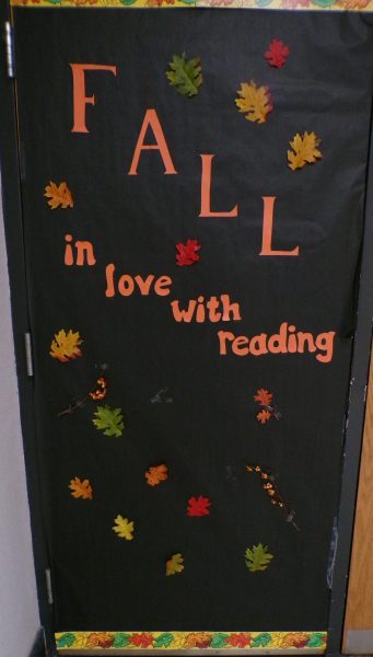 Students help, librarian, Mrs. Maxey welcome Fall into Chatham High School. (Takira Fitzgerald)